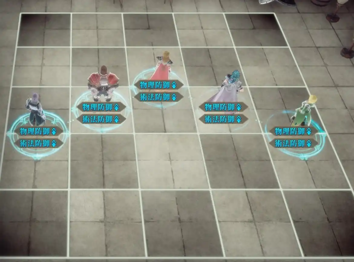 ホーリーウォール | 前列に出た三人が身を挺して壁となり後列を守る。後列は前列が崩れない限り狙われない。